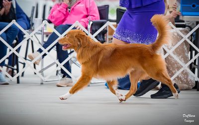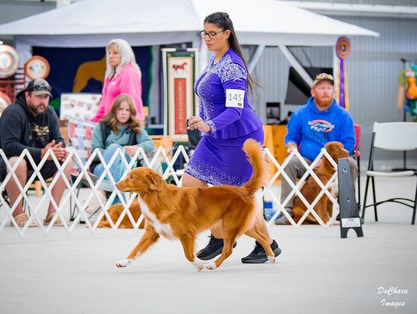 Brawn is another Hula pup we are very excited about! He has the goofiest personality and his temperament will make anyone fall in love. We see a lot of potential in this young dog to make some noise in the show ring when he’s older. He caught our attention in a large litter with his substance, structure, and bold temperament, and we knew early on that he would become something special. He shows with so much confidence and joy that he just makes you want to look at him. Brawn finished his Championship from the Bred By Exhibitor Puppy class in 5 days of showing, exclusively handled by Daniela. At the 2024 AKC National Championship in Orlando, he was Winners Dog all 4 days, Best of Winners 3 of 4 days, Best Puppy and Best Bred By Exhibitor in the supported entry, and received an Award of Excellence alongside many of the top ranked Tollers in the country! He was also awarded Best of Breed in AKC’s Puppy Sweepstakes, earning the informal title of “AKC’s Toller Puppy of the Year”. We are so excited to watch him grow up and pursue both conformation and performance sports!