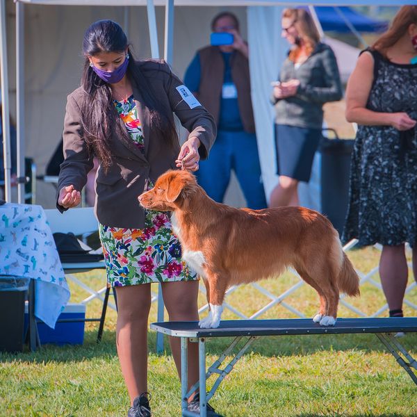 Hula is another Kisses pup who excels both in the show ring and sport venues. She loves her snuggles, but she knows when to turn on the heat! Hula loves to win, whether it be chasing after toys in the yard with the other dogs or in the show ring. Her “all eyes on me” attitude makes her a force to reckon with in the conformation ring. She had a strong start to her Rally career, earning an invitation to the 2021 AKC Rally National Championship in the Novice class. She is showing a lot of promise in agility and we are excited for her to get back to competition after her final litter has gone home.